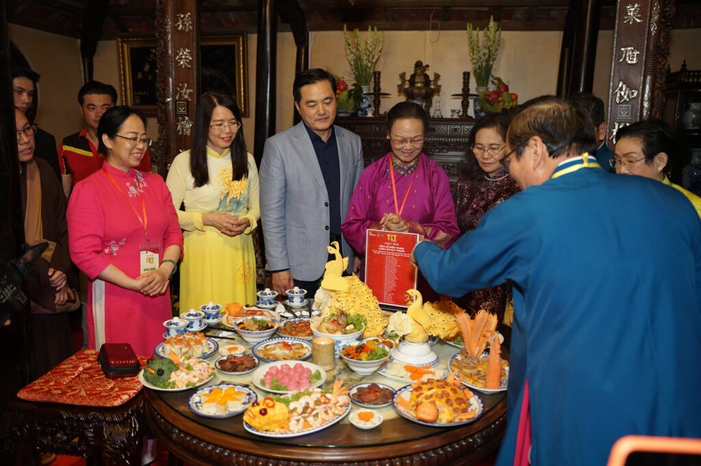 Mâm cỗ Tết truyền thống được trưng bày trong gian nhà rường bài trí theo phong tục từng ba miền