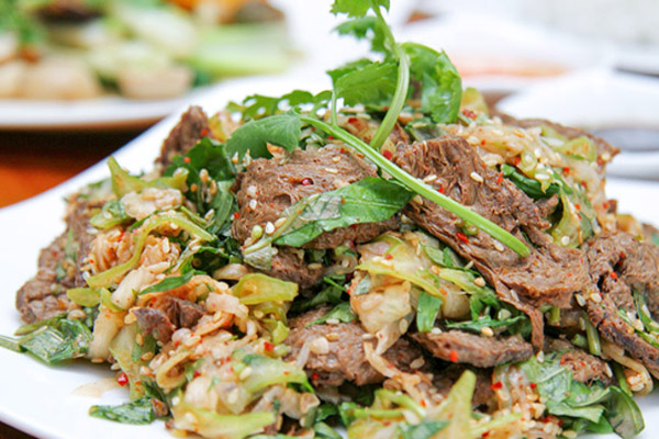 Món ngon miền Tây trong một bữa cơm nhà với gỏi bò bóp thấu, bánh xèo cuốn rau rừng, canh chua cá.