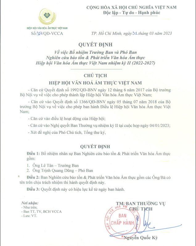HIỆP HỘI VĂN HÓA ẨM THỰC VIỆT NAM