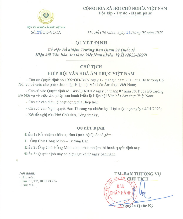 HIỆP HỘI VĂN HÓA ẨM THỰC VIỆT NAM