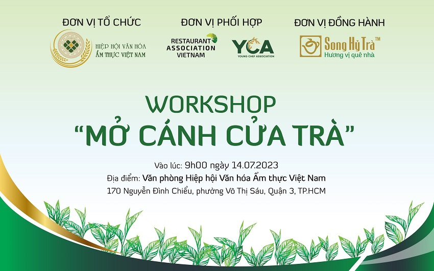 Workshop “Mở cánh cửa trà” sẽ được Hiệp hội Văn hóa Ẩm thực Việt Nam (VCCA) tổ chức vào ngày 14/7/2023 nhằm giới thiệu văn hóa thưởng trà và các kiến thức về trà. ![]()